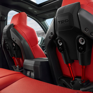 TRD-PROに標準装備となるISO-DYNAMIC POERFORMANCE SEATというメカメカしいシートが装着されています。これはオフロード走行時における身体のぐらつきや振動を空気とオイルによって身体の安定姿勢を保つための制御装置だそうです。詳しくは分かりませんがおそらく車体とシートが独立して動くのではないかという気がします。